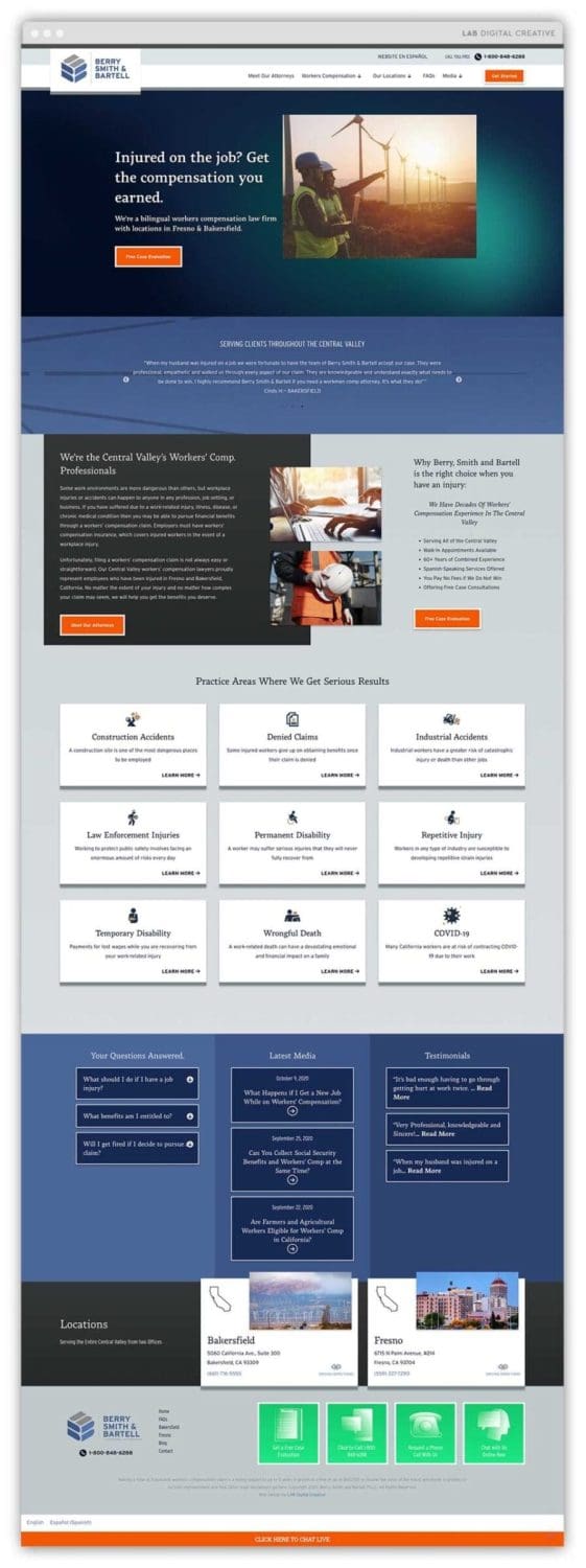 Berry, Smith & Bartell is a prestigious worker’s compensation law firm based in California. The firm specializes in representing individuals in worker’s compensation cases. BSB needed a website that effectively communicates their expertise and approachability in order to better serve their diverse clientele and gain more clients.
