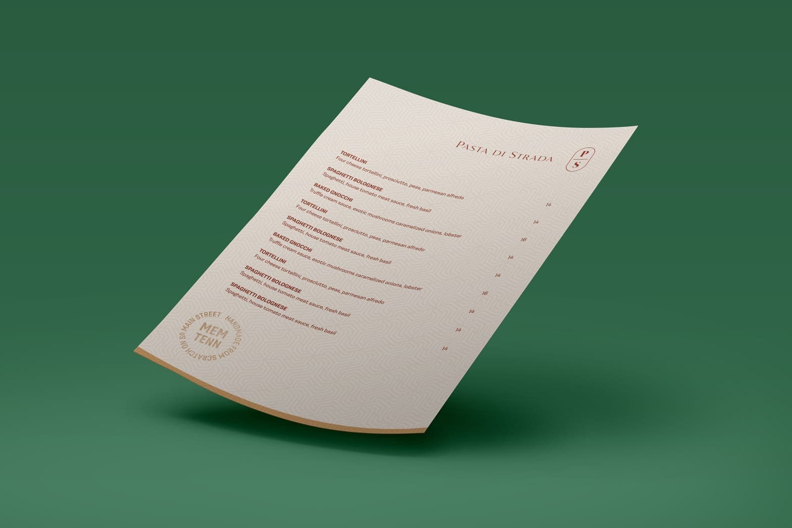 LAB got to work creating a brand that is modern yet timeless. We wanted to reflect the handcrafted, artisanal quality of the pasta made daily at Pasta di Strada. LAB created a brand that expresses the fine, elevated quality of the food offerings. Using hearty fire brick red, wheaten golds, and florid greens—we developed a color palette that communicates the fresh nature of Pasta di Strada. The typography palette that bespeaks timelessness yet taking a modern approach.